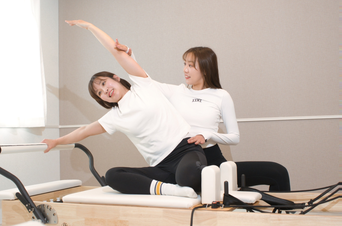 マシンピラティスはマシンのサポートがあるので、初めての方でも正しい動きを習得しやすいです。
